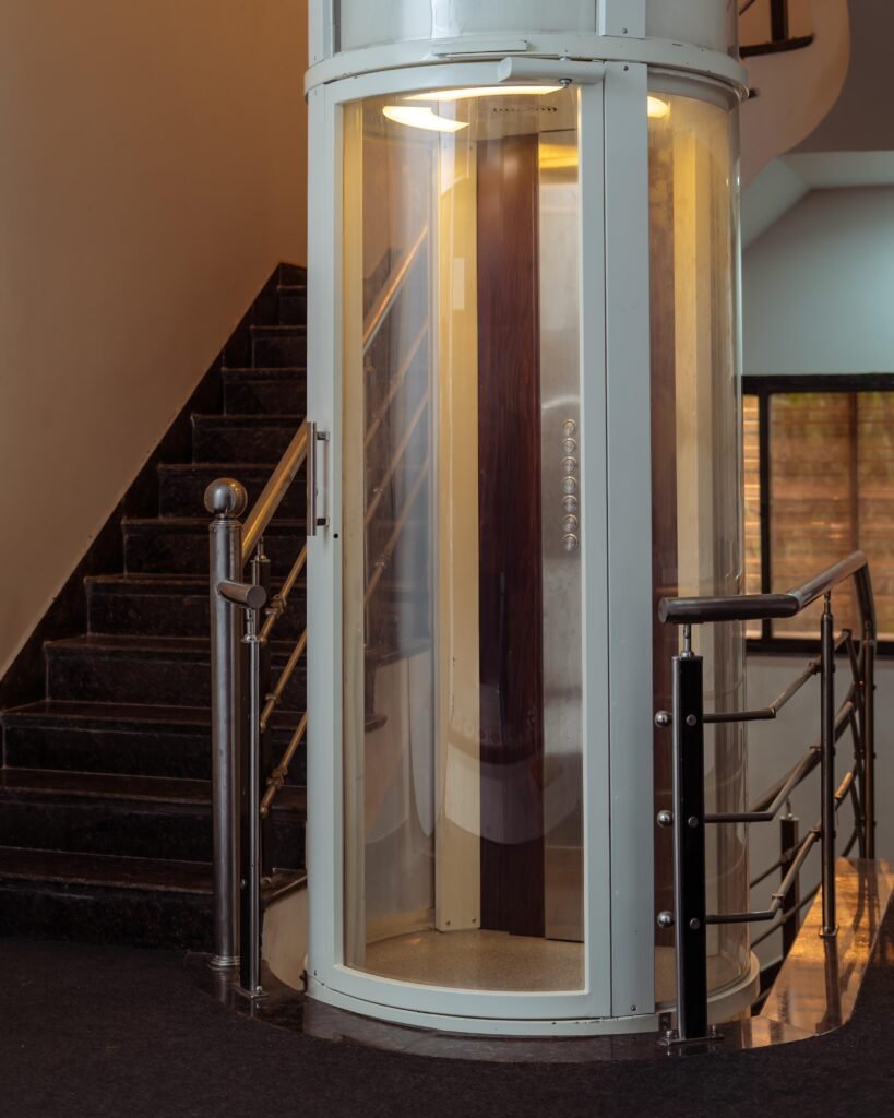 Elegant. Compact. Circular. Designed to impress and built to perform, the FLIT Icon Series 1 is a premium circular home elevator tailored for elegant interiors and space-conscious architecture. Its full polycarbonate cylindrical structure, paired with a durable powder-coated frame, offers a sleek, modern look that enhances any luxury space. Powered by advanced hydraulic technology, it ensures smooth, silent, and jerk-free travel, making it the perfect lift solution for villas, duplexes, and upscale residences where both design and functionality matter.