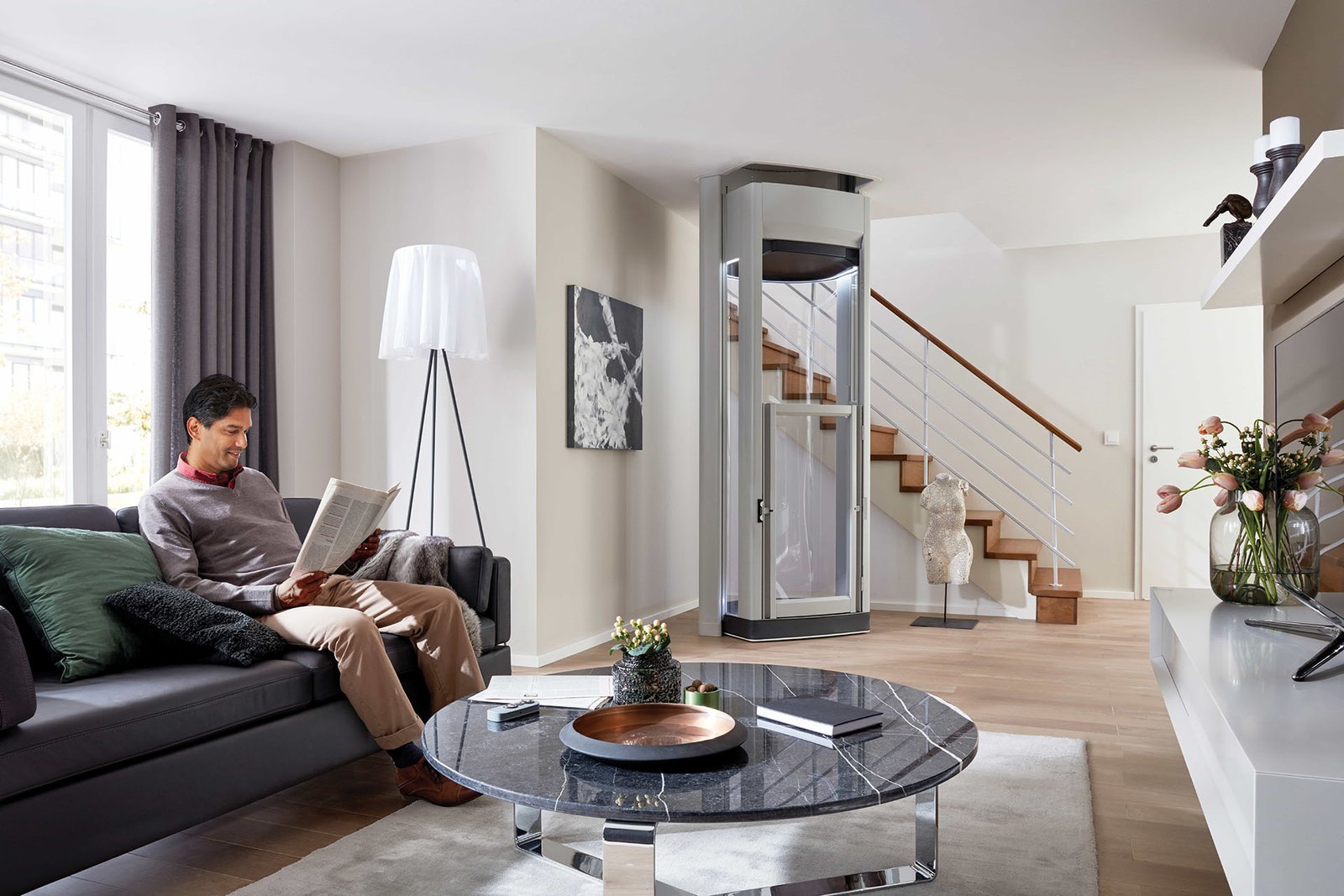 No visible hoistway or noisy motor, offering flexible placement within the home.